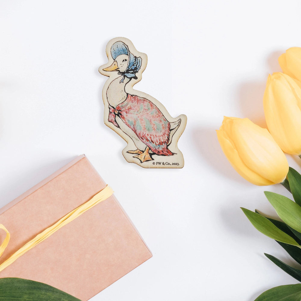 This Jemima Puddle-duck Wooden Magnet would make a truly unique gift or self-purchase. We have been working hard towards our sustainability goal, creating Beatrix Potter gift items that include responsibly sourced materials. This item has been made in the UK using sustainably sourced, certified plywood and cardboard packaging. Presented on a branded backer card, making this item a suitable gift or souvenir for any Beatrix Potter fan.