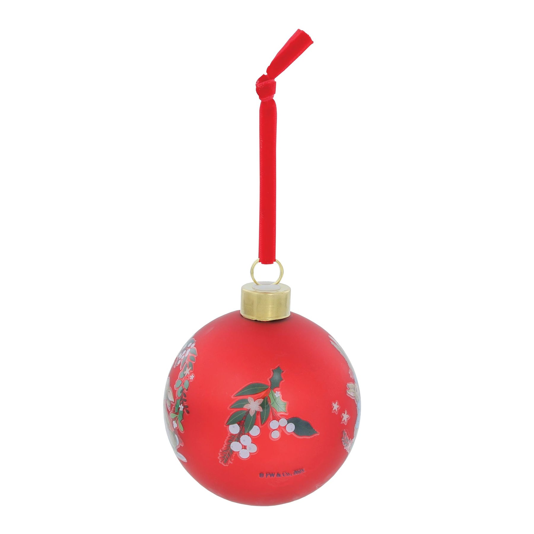 Introduce a classic, warm festive design to your Christmas gift offerings with this new Peter Rabbit & Family Red Bauble. This high-quality glass bauble features a striking, rich red colourway, making it an instant focal point on any tree. The bauble showcases original Beatrix Potter illustrations featuring the ever-popular Peter Rabbit, Mrs. Rabbit, and Flopsy. Designed for premium gifting, it includes a luxurious velvet hanger and is presented in a branded open-window gift box for maximum retail impact. This product perfectly taps into nostalgic family gifting trends during the Christmas season.