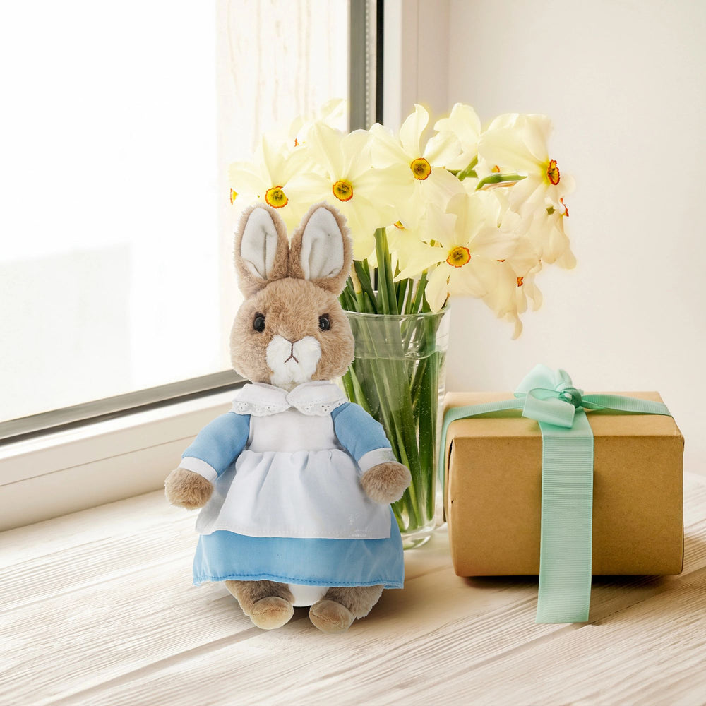 This Mrs. Rabbit soft toy is made from beautifully soft fabric and is dressed in clothing exactly as illustrated by Beatrix Potter, in her blue dress and white pinafore. The Peter Rabbit collection features the much loved characters from the Beatrix Potter books and this quality and authentic soft toy is sure to be adored for many years to come. This product is suitable from age 1+, hand washable and CE marked.