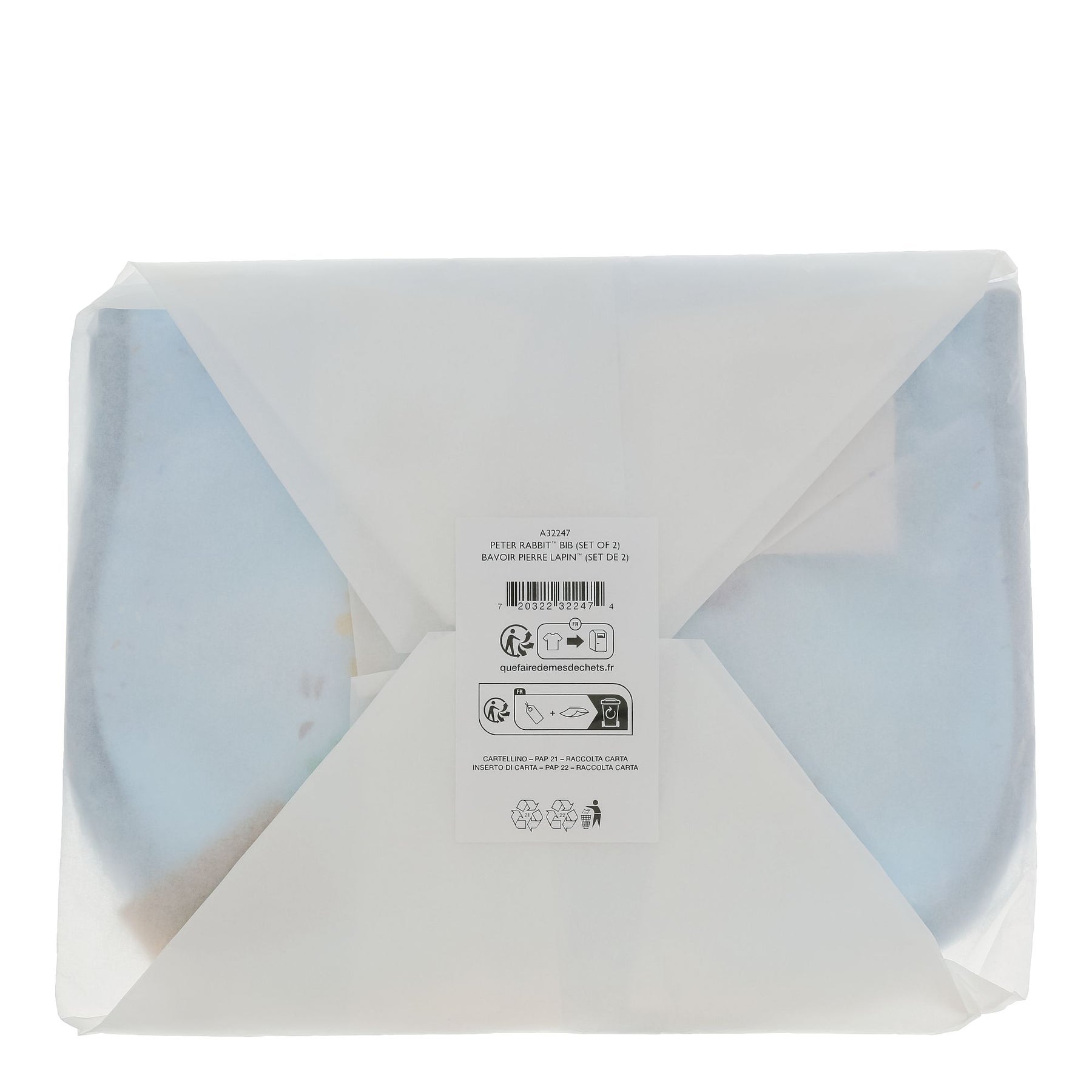 Introducing the delightful Peter Rabbit Bib Set, inspired by the charming tales of Peter Rabbit and friends. This enchanting set of two bibs ensures mealtime is both stylish and mess-free. Crafted with super-soft, wipeable fabric, each bib features an easy Velcro fastening for quick changes. Adorned with whimsical illustrations, these bibs are perfect for little ones. The set comes elegantly presented with a branded gift hanger and hangtag, making it an ideal gift for any occasion. Make every meal a magical adventure with Peter Rabbit.